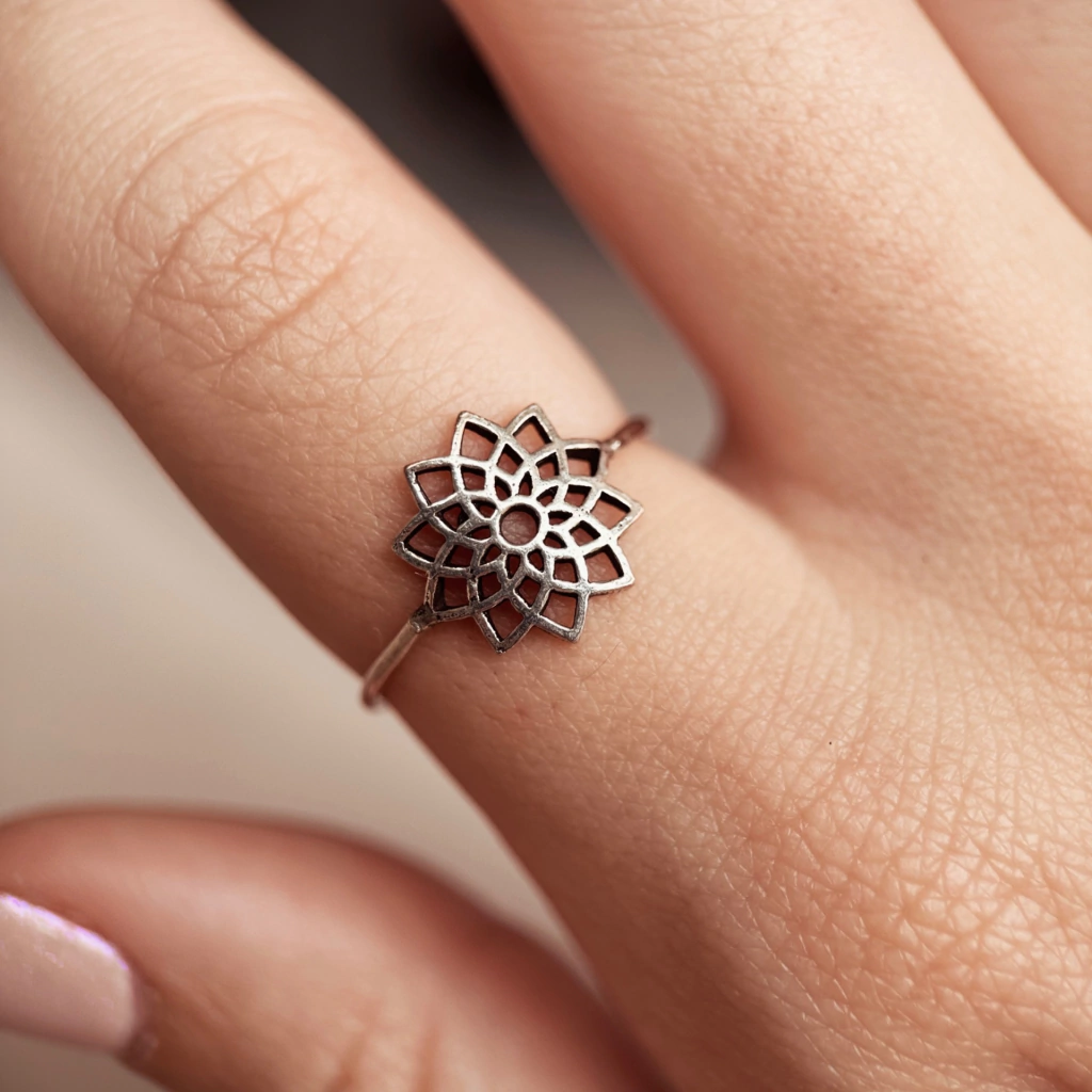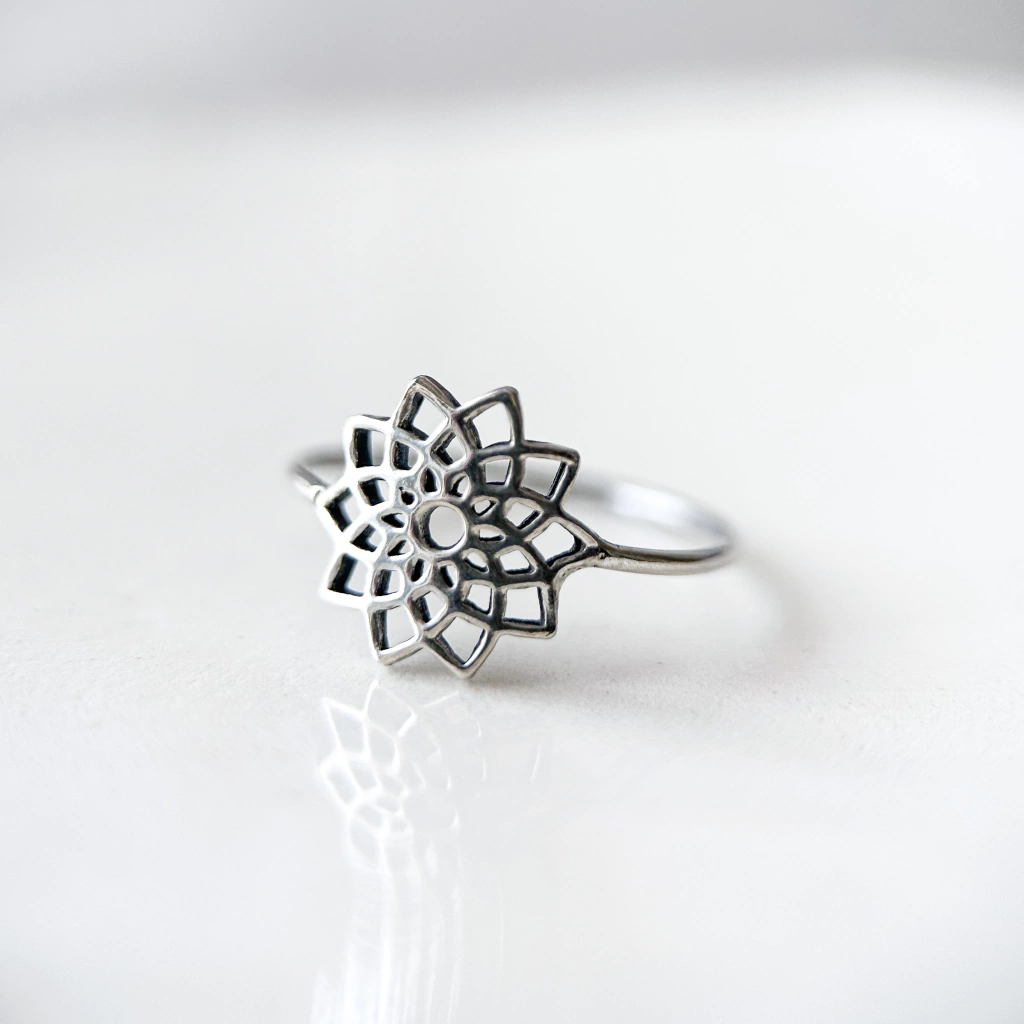 Es un anillo de plata 925 con forma de un mandalita para que siempre te acompañe.