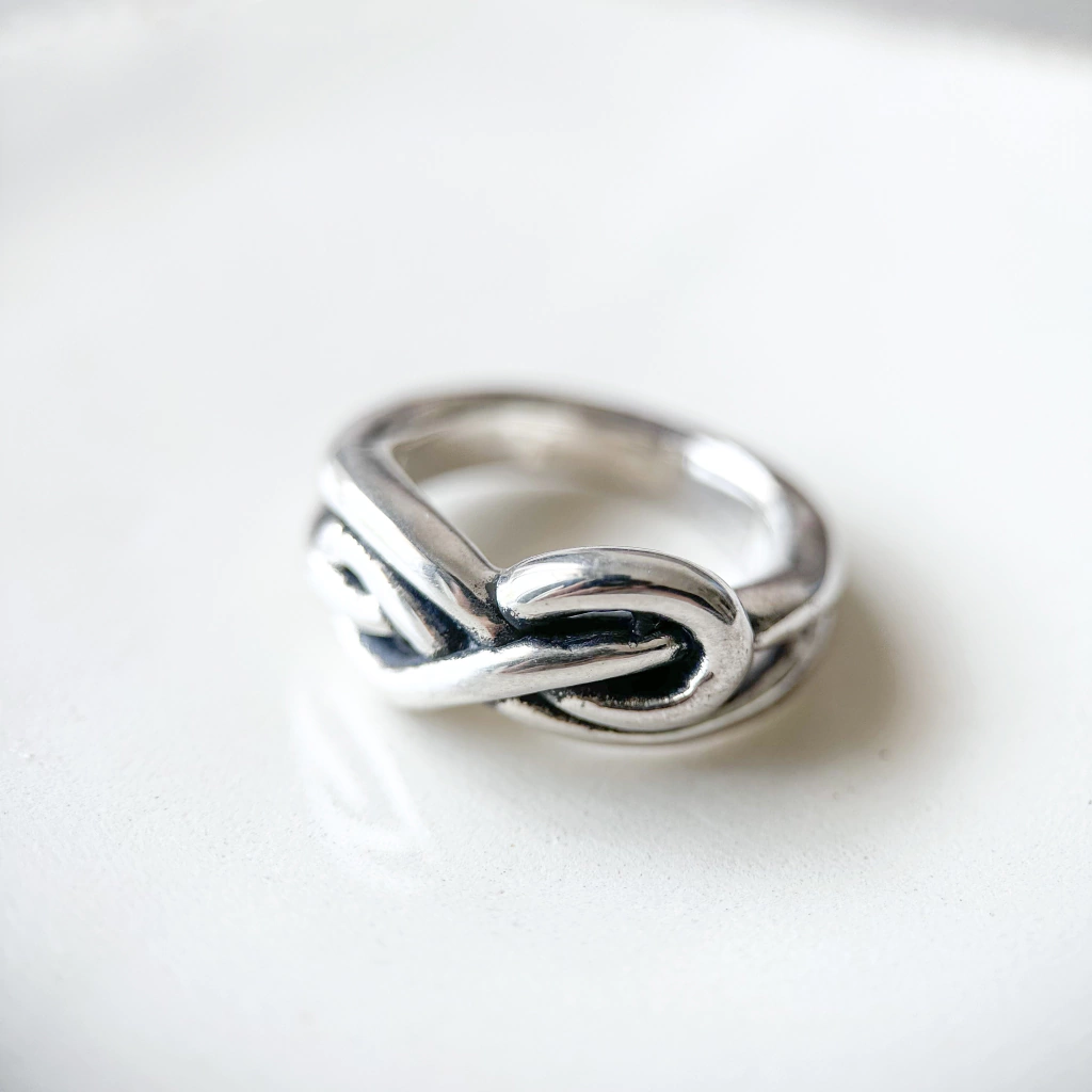 Paris es un anillo de plata inflada 925 con forma de nudo en la parte frontal. Es ideal si no te gustan los anillos finitos, ya que al ser de plata inflada, tiene mucho mas volumen que nuestros anillos promedio.