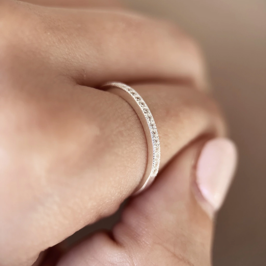Anillo de plata 925 con microcubics color cristal en la parte frontal. Es super finito y delicado, ideal para combinar en el mismo dedo con otro anillo con cubics.