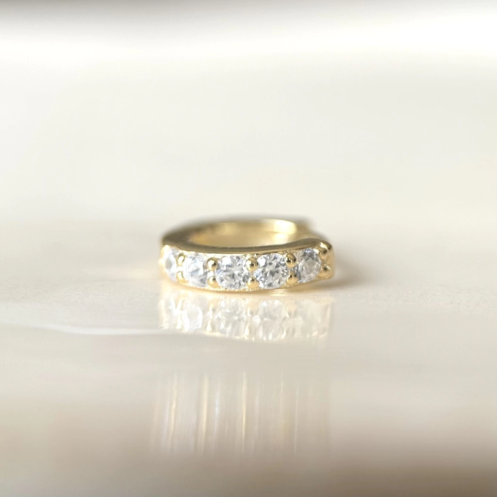 Katy es de plata 925 con baño de oro 18k y microcubics color cristal. Y también la podés conseguir sin el baño de oro, en plata haciendo click aquí. Te animas a combinar una de cada color en una oreja?