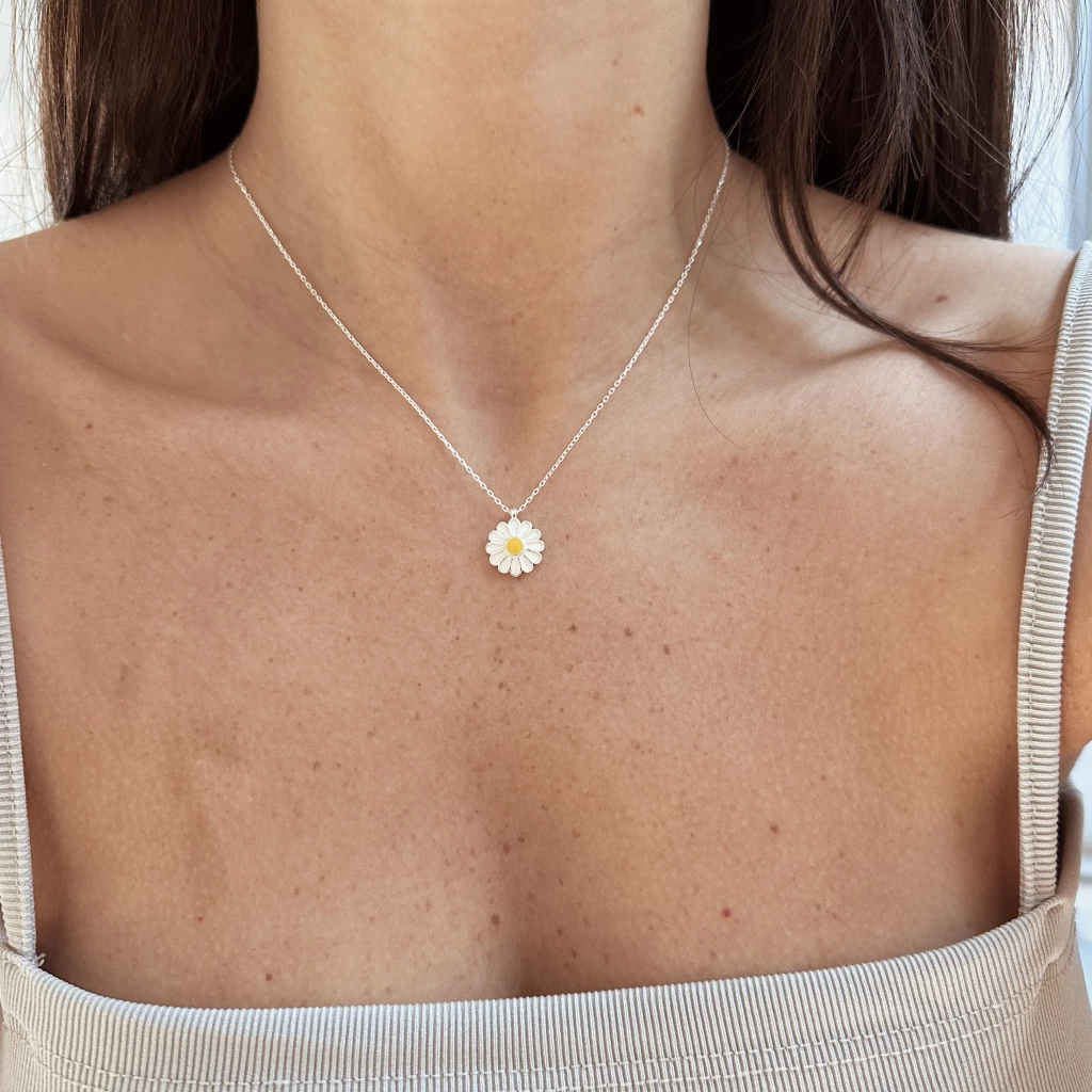 Collar de plata 925 con dije de margarita esmaltada.