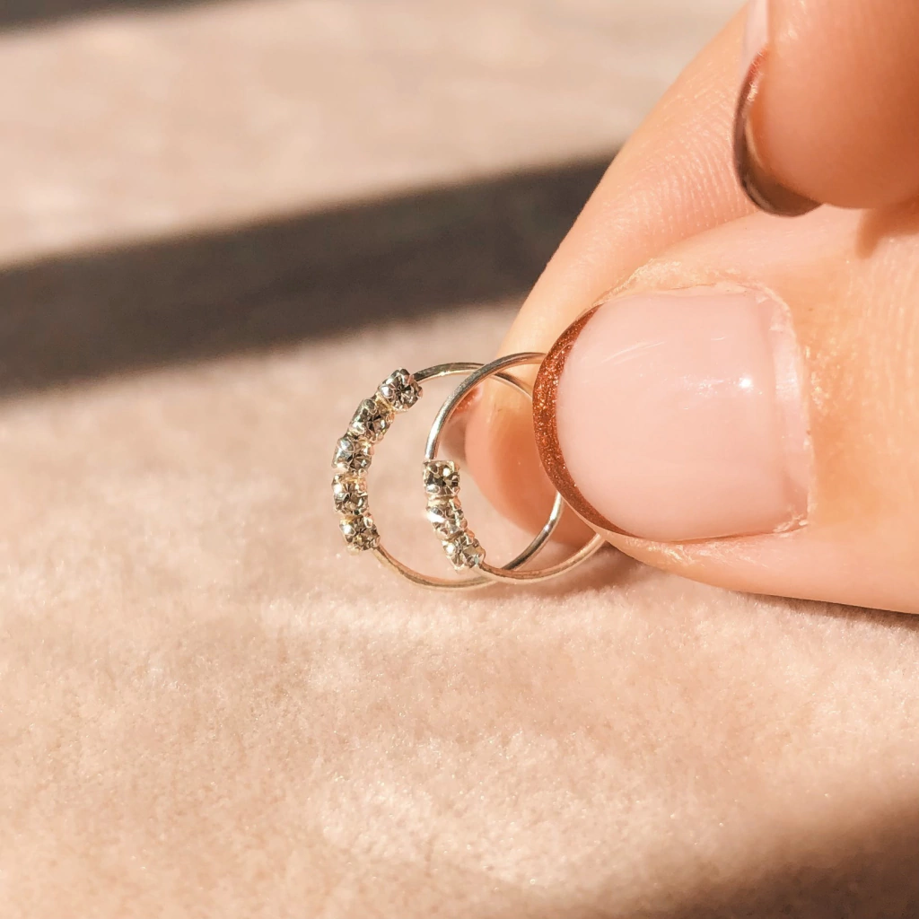 Kim es un arito pensado para el cartílago o piercings que mide 1cm, pero muchas de ustedes los usan como argollitas, como te mostramos en la segunda foto del producto. En una de las uniones de la argolla con el cubic, se encuentra la abertura para poder ponerse el arito, este se cierra a presión. Si bien ha sido pensado para piercing/cartílago, puede ser usado como argolla comun en un primer agujerito.